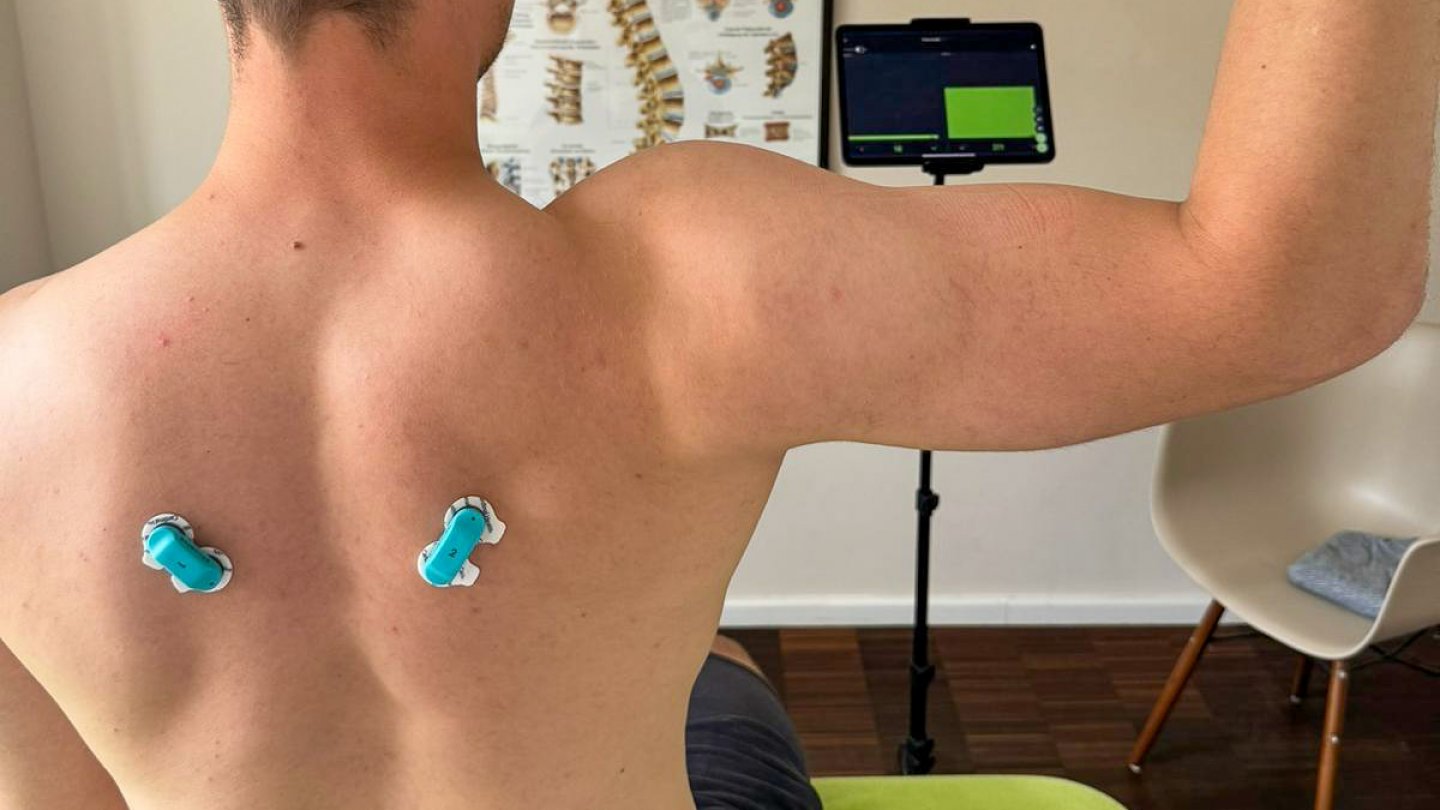 Die Muskelaktivität wird über eine oberflächig aufgebrachte Klebeelektrode abgeleitet und auf einem Bildschirm sichtbar gemacht (sog. Mapping).